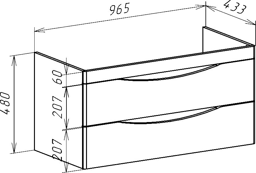 - Тумба под раковину (ш/в/г): 965х480х433 мм