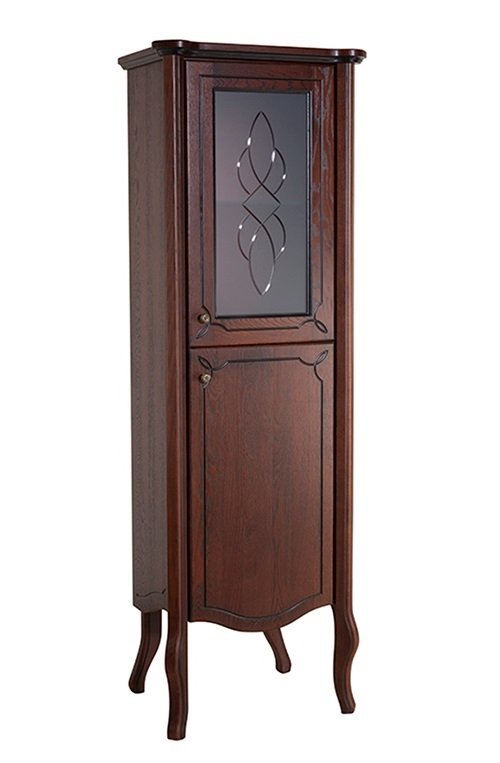 Напольный шкаф-пенал с массива дуба правым расположением Bellezza Грация Люкс 60 в цвете вишня, станет отличным дополнением для респектабельных интерьеров. Выполненный из натурального массива дуба и созданный по образцам классического стиля, он несёт в себе традиции аристократического дизайна. В качестве декора здесь использованы изящные изогнутые ножки, художественная контурная резьба, а дополнительный акцент вносит вставка из матового стекла с узором, установленная в верхний распашной фасад пенала.
